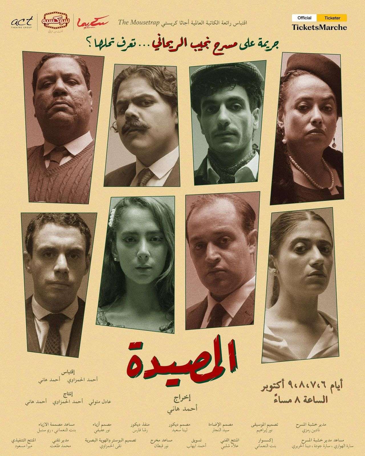 تعرض مسرحية "المصيدة" المقتبسة من رائعة أجاثا كريستي "The Mousetrap"، على مسرح الريحاني، بدايةً من غدٍ الإثنين 6 أكتوبر، حيث تعد أكثر مسرحية تم عرضها بشكلٍ متواصلٍ على مسارح الويست إند في لندن (1952-2020)، والعمل المسرحي الأكثر عرضًا حول العالم بـ 30 ألف عرض.