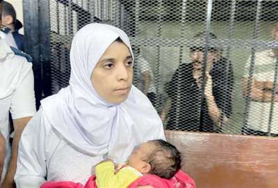 كانت المحكمة قد عقدت جلستها الأولى بحضور المتهمة، التي ظهرت وهي تحمل طفلها الصغير، واستمتعت هيئة المحكمة إلى طلبات الدفاع، والتي تضمنت مناقشة الطبيب الشرعي وعددًا من الطلبات الأخرى.