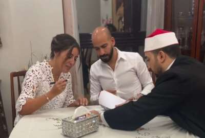 ظهرت في الفيديو خلال عقد قرانها الذي احتفلت به في أجواء عائلية هادئة، وهي تقوم بالتوقيع على عقد الزواج وكتبت: "ذكرى جملة (امضي يا أشول)".