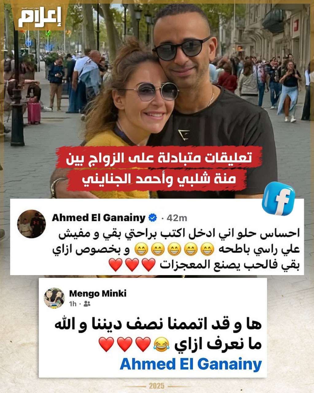 أعلنت منة شلبي الزواج رسميا بالأمس في تصريحات صحفية، كما شاركت منشورا عبر موقع التواصل الاجتماعي "فيس بوك"، قالت فيه لزوجها أحمد الجنايني: "ها وقد أتممنا نصف ديننا، والله ما نعرف ازاي".