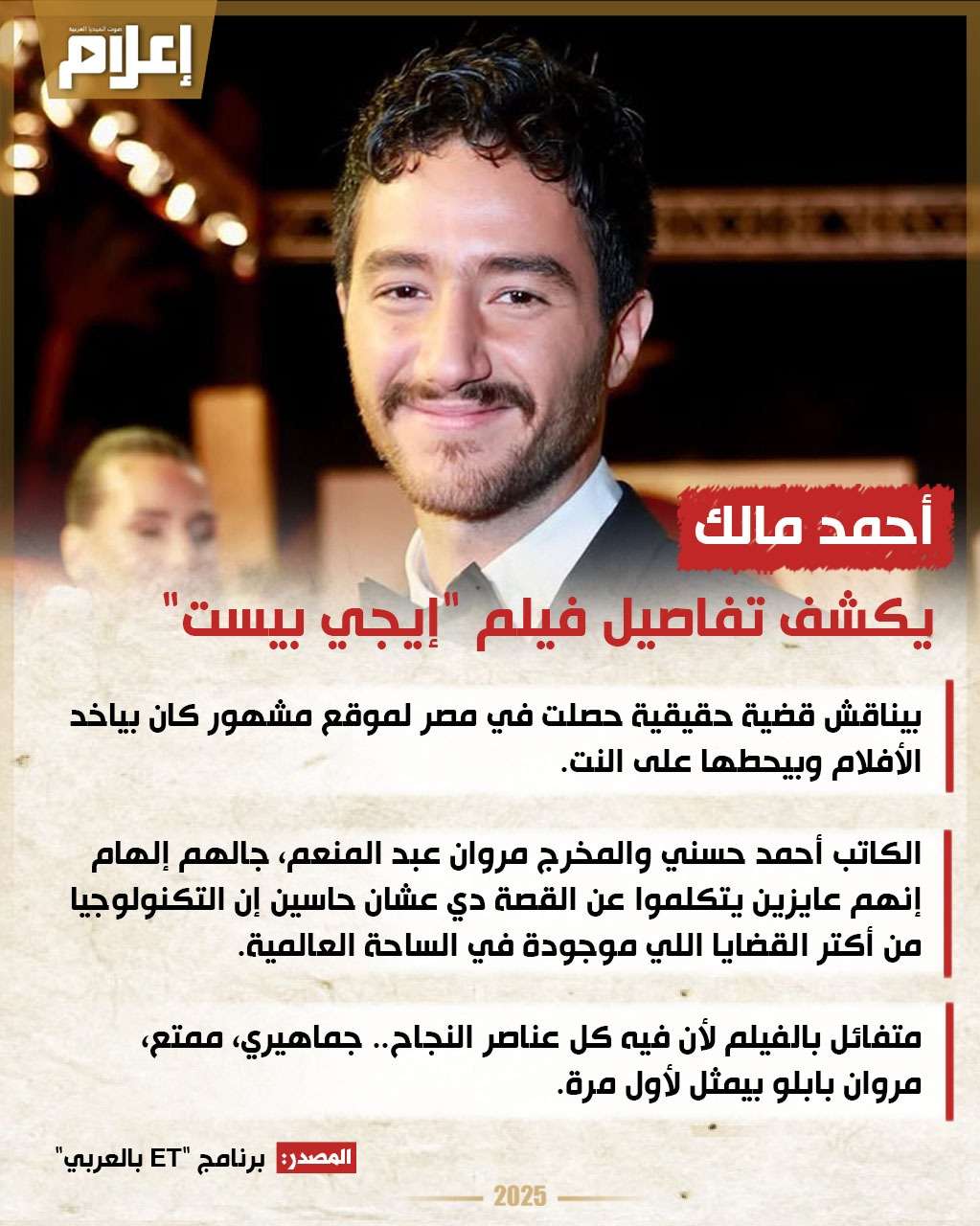 كشف الفنان أحمد مالك، تفاصيل فيلمه الجديد الذي يحمل اسم "إيجي بيست".
