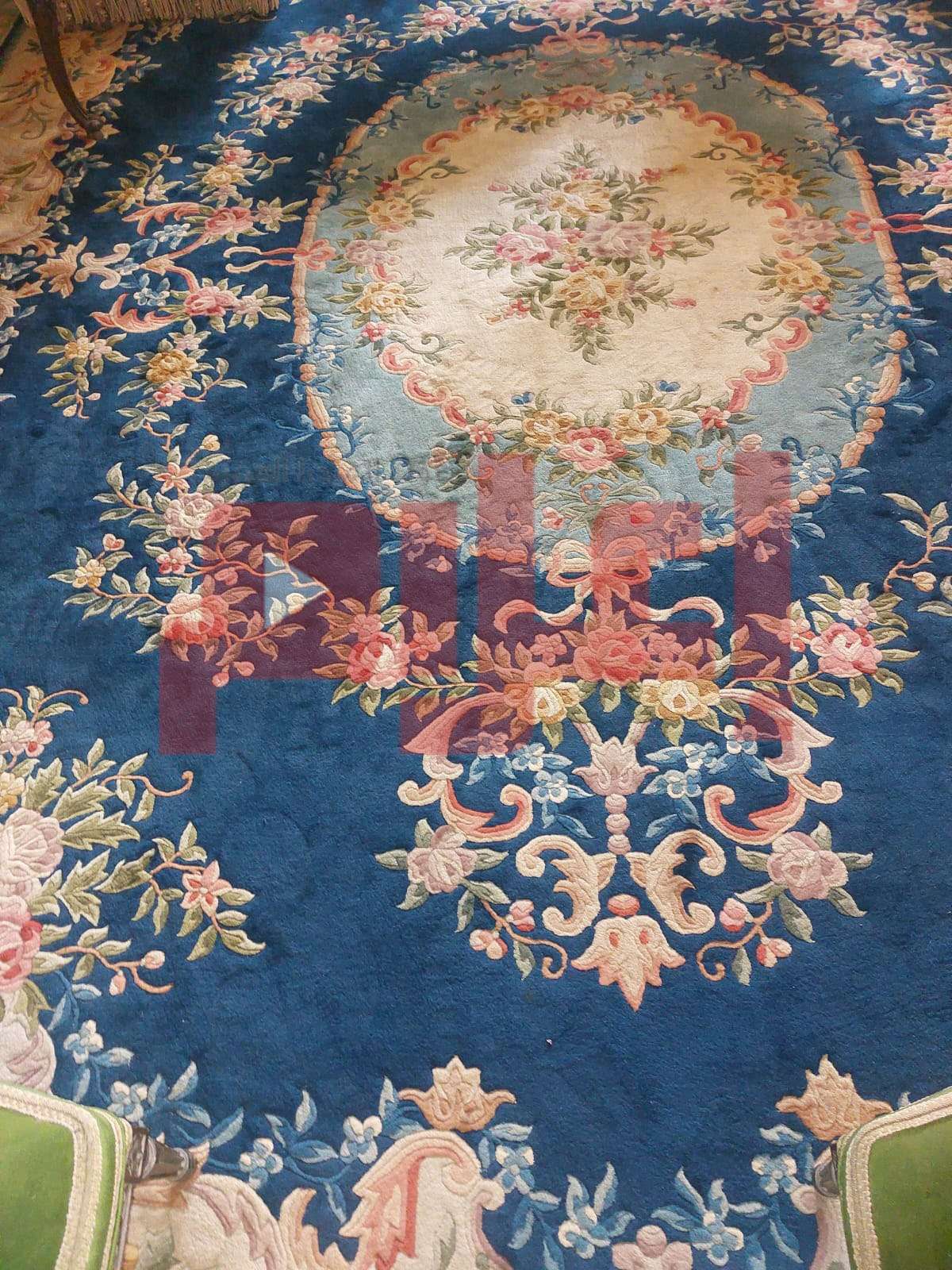 - لاحظنا في أرجاء المنزل بعض الديكورات التي تحمل ملامح من فنون دول آسيوية وتحديدا الصين. كما تتصدر غرفة الاستقبال سجادة زرقاء ذات طابع فرنسي، وتضفي على المكان لمسة من الفخامة والدفء.