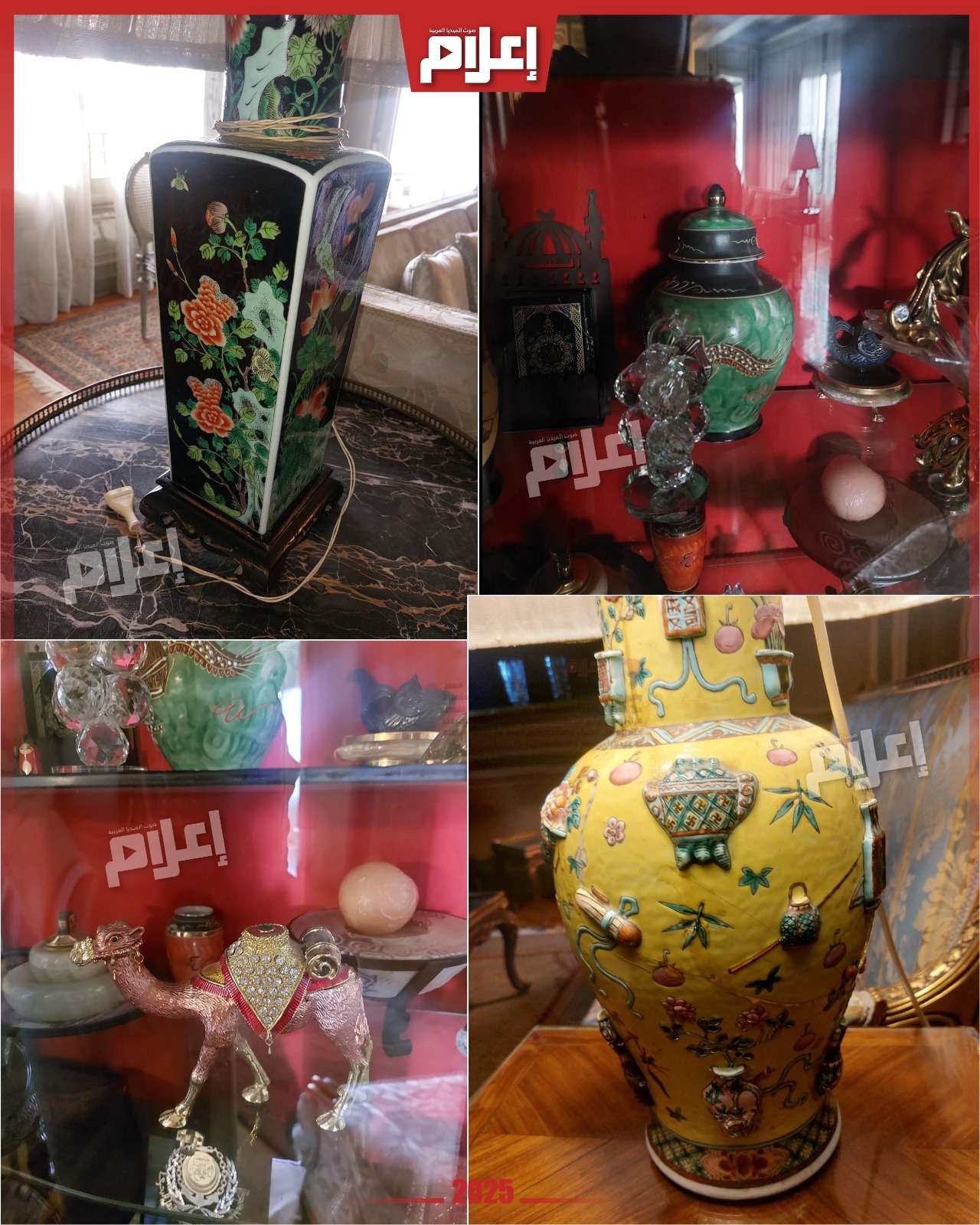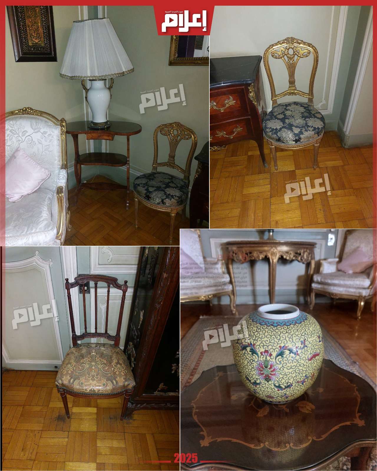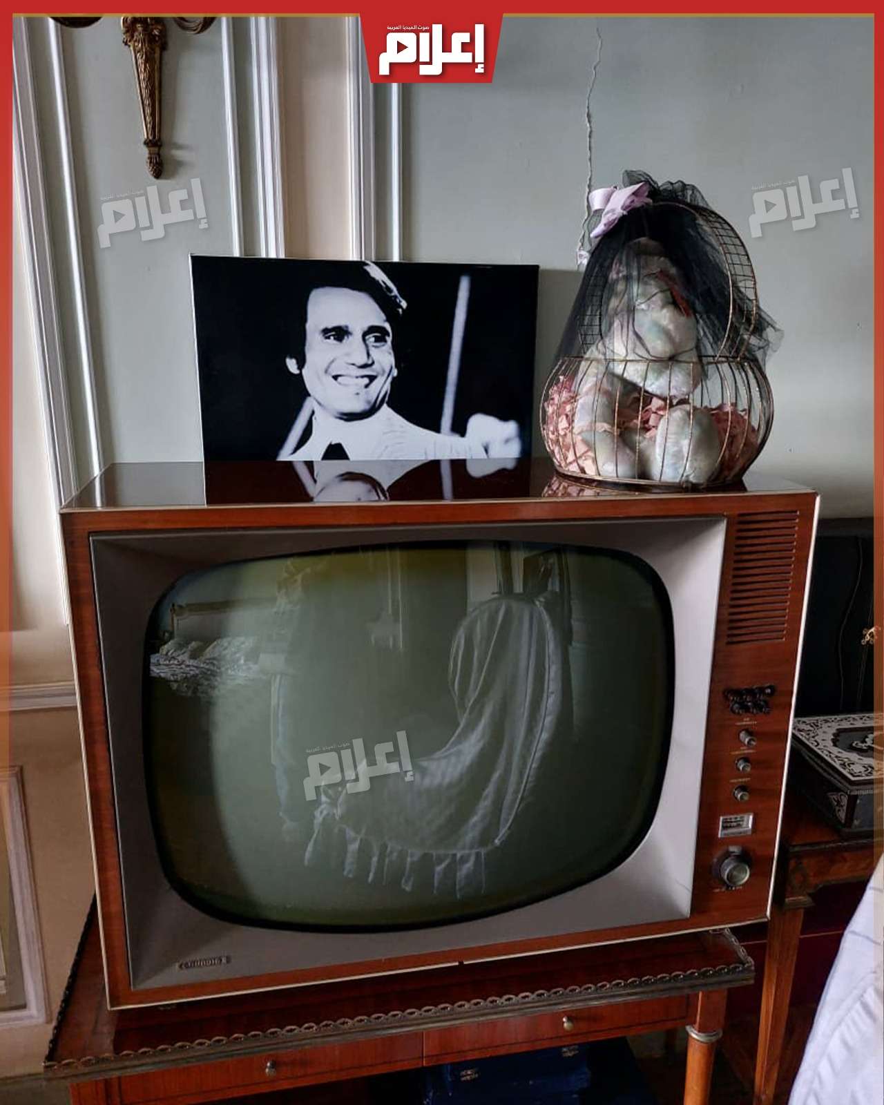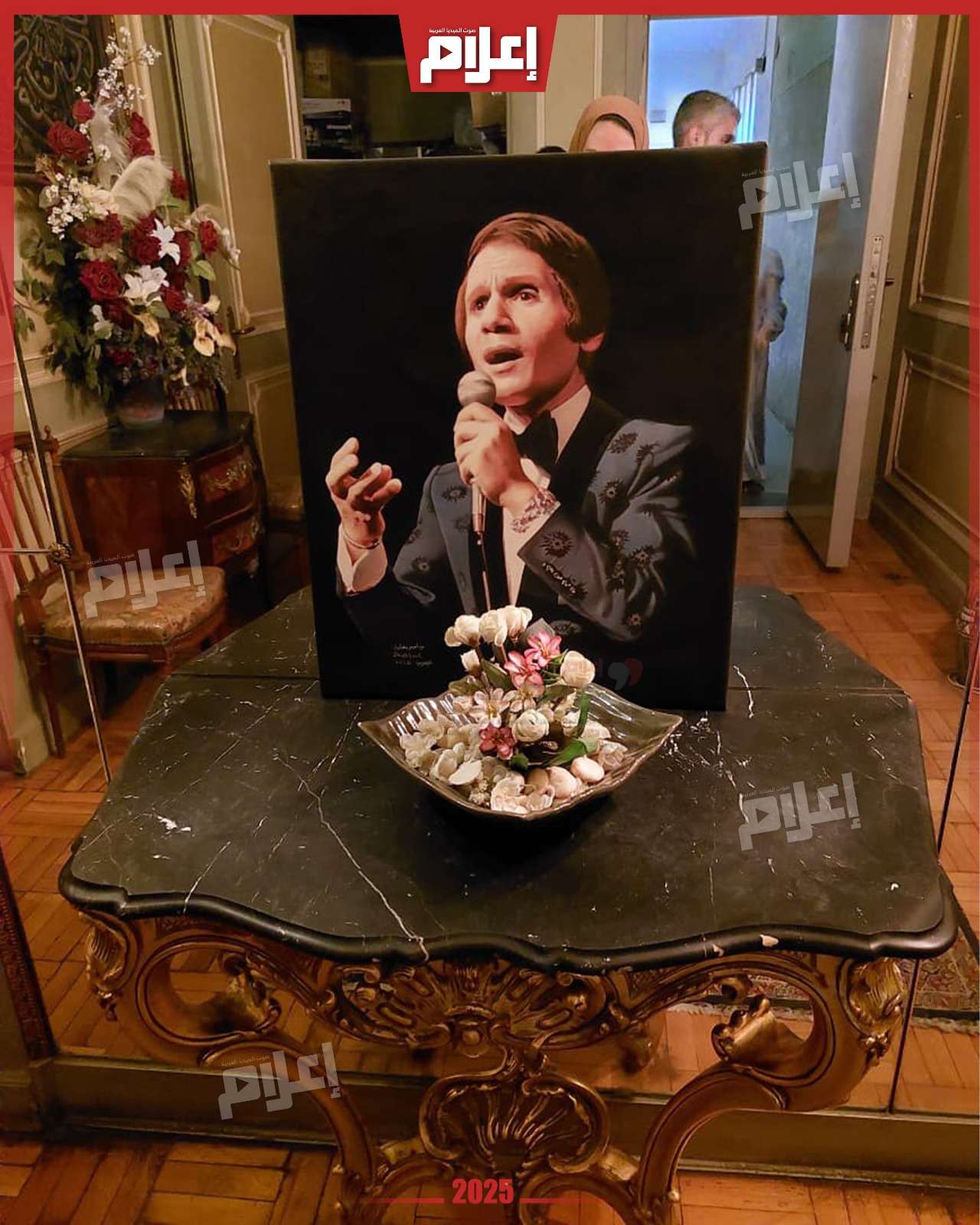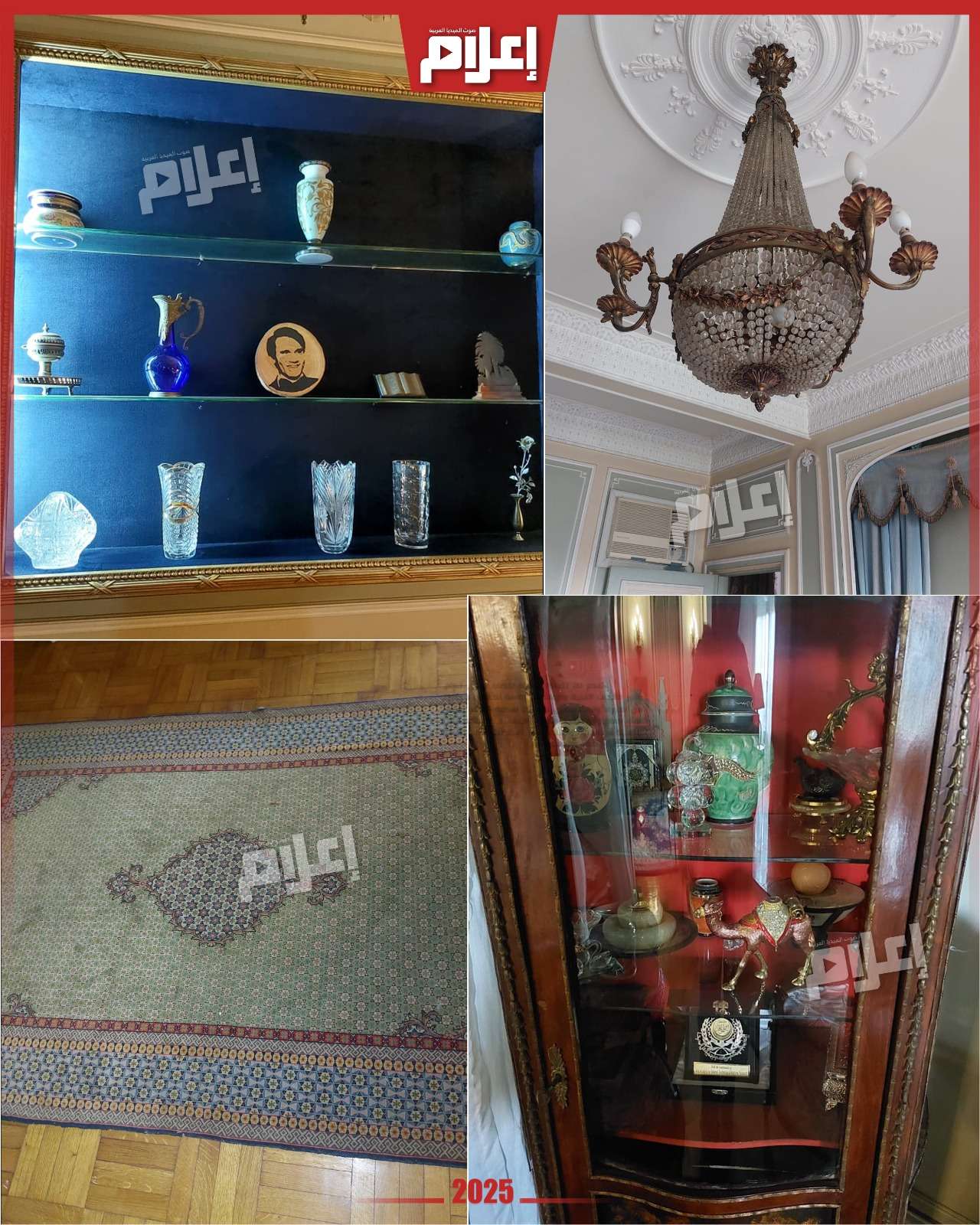 - في مدخل الشقة تستقبلك صورة كبيرة للعندليب، ثم تنتقل إلى غرفة الاستقبال التي تضم أربع زوايا مختلفة للجلوس، تحتوي على أكثر من صالون بتصميمات وديكورات متنوعة، تبدو في جمالها وكأنها أنتيكات قادمة من زمنٍ مضى بكل ما تحمله الكلمة من معنى.