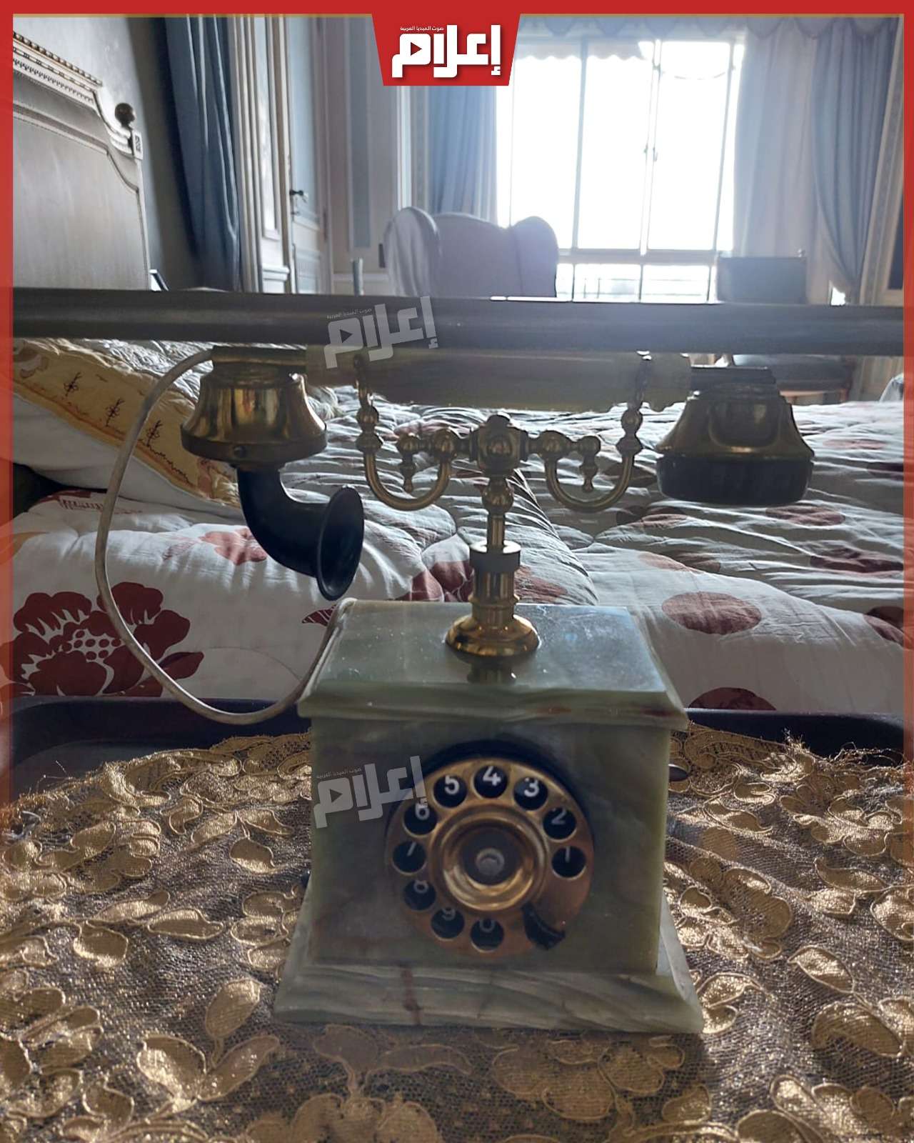 - وأخيرًا، وصلنا إلى غرفة نوم العندليب، التي أبهرتنا بتفاصيلها الدقيقة، لفت انتباهنا الهاتف الأرضي المصنوع من الرخام والمزيّن بألوان زاهية، وهو نفسه الذي ظهر به عبد الحليم حافظ في إحدى صوره الشهيرة على فراش المرض داخل غرفته وعلى ذات السرير.