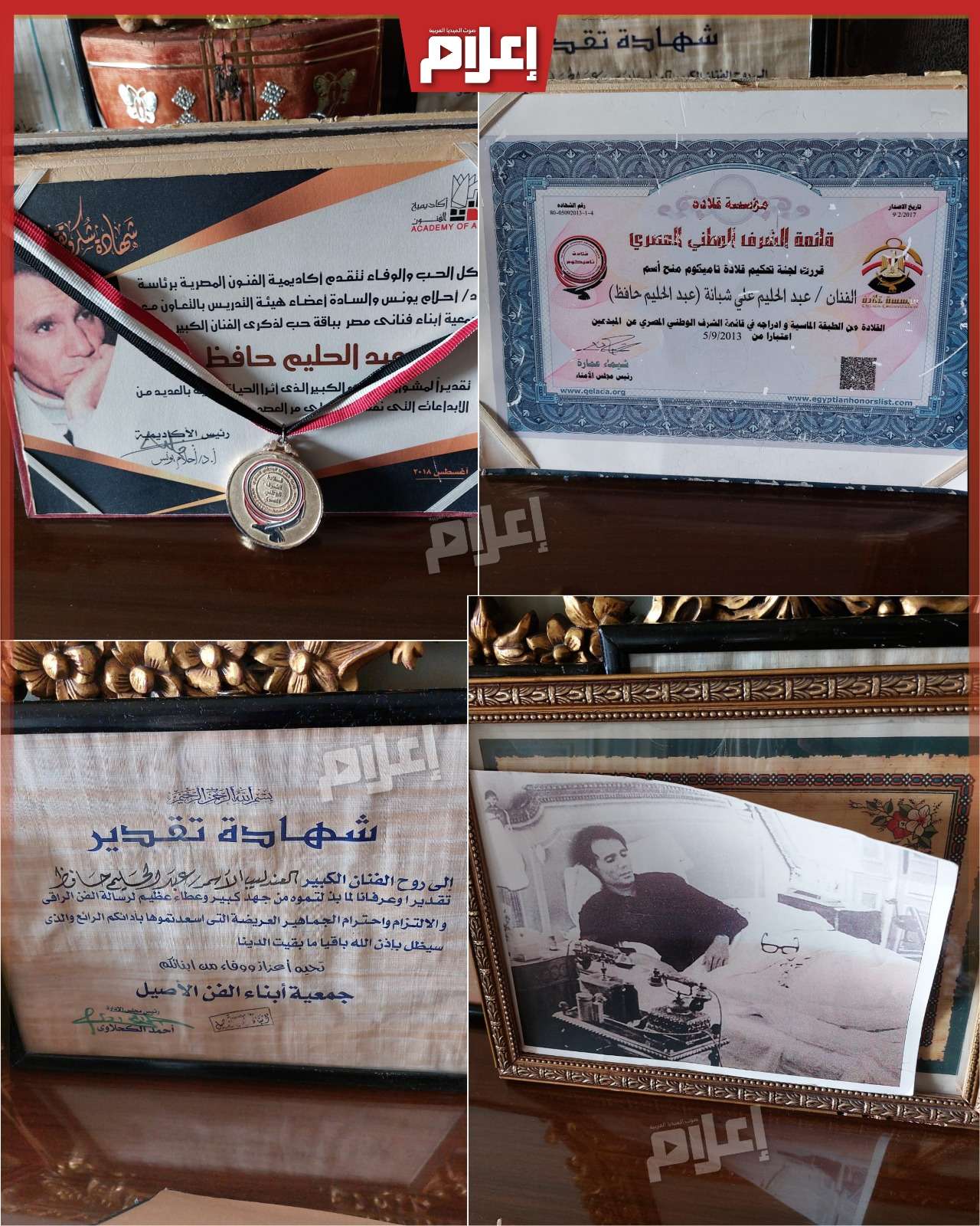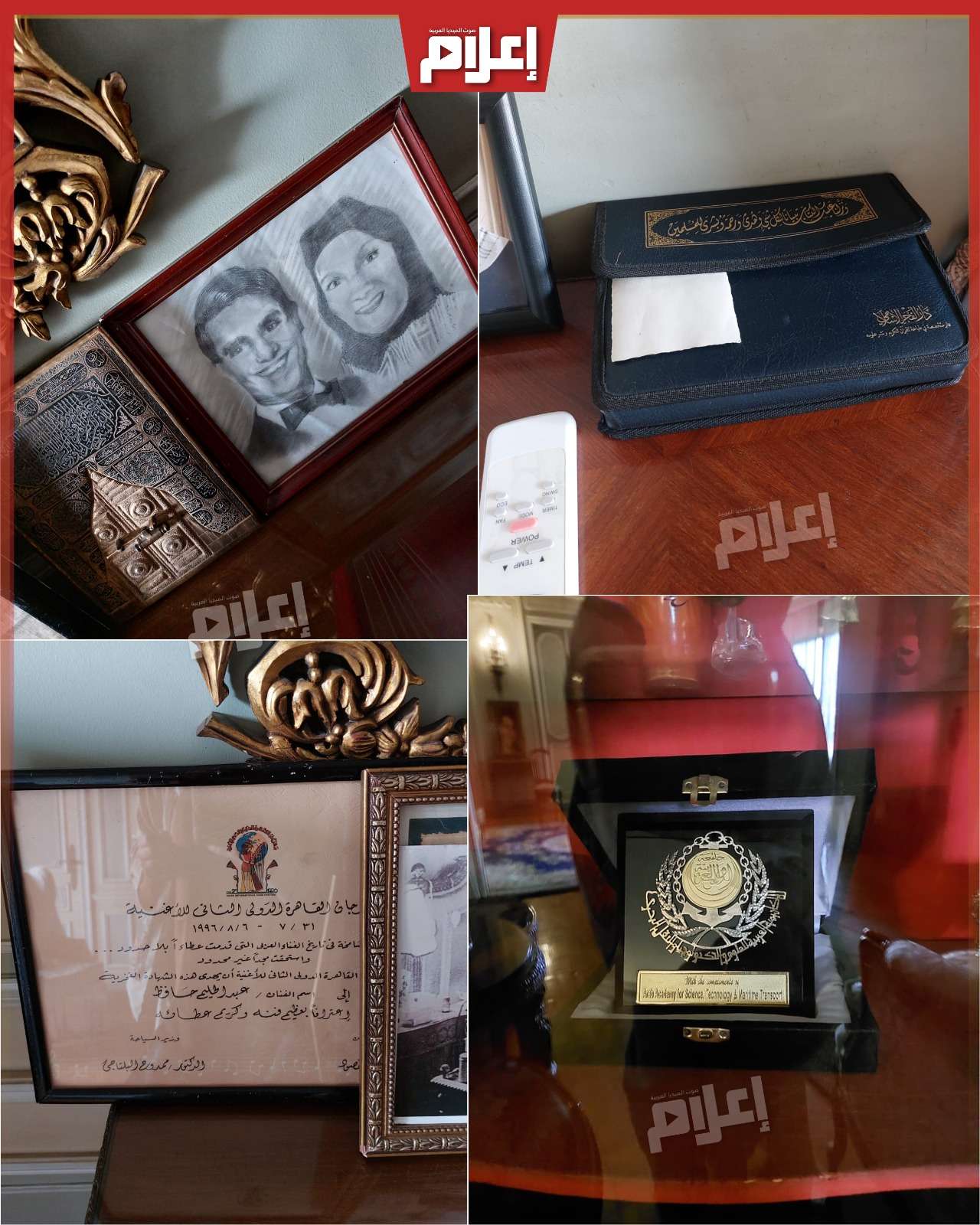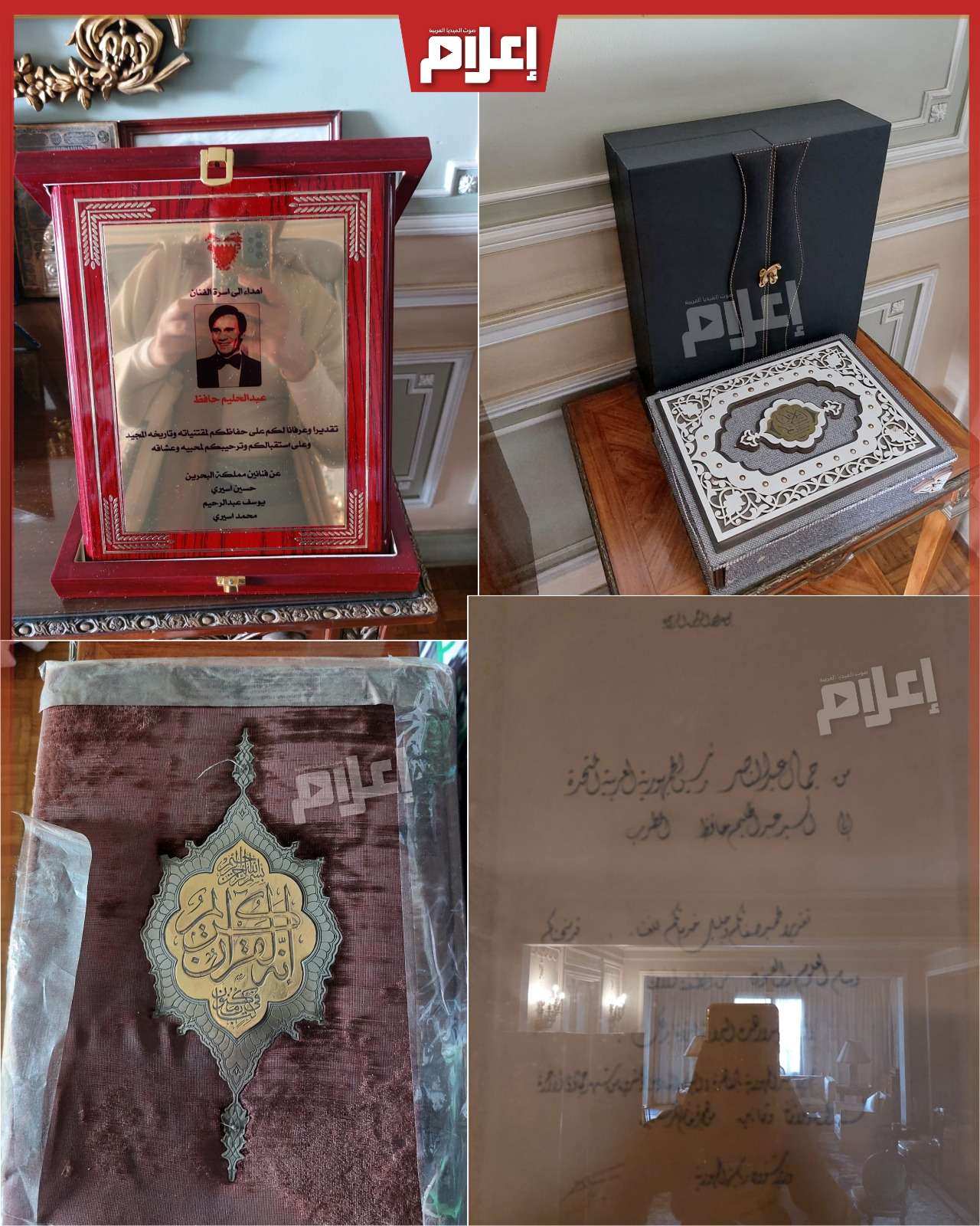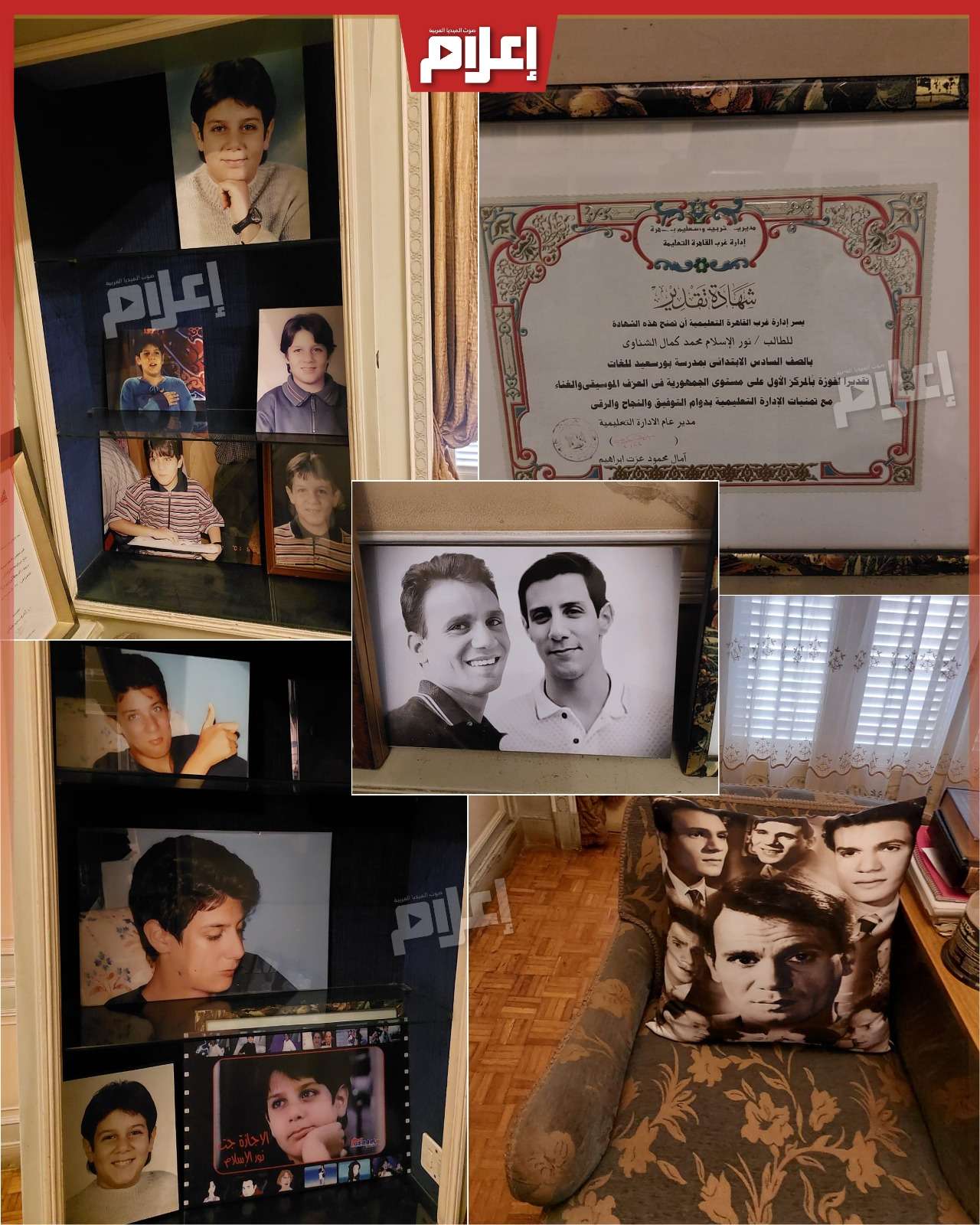 وفي الغرفة ذاتها، وجدنا إهداءات وصورًا مقدمة لأسرة عبد الحليم حافظ، إلى جانب صور من طفولة نور الشناوي، نجل المخرج محمد الشناوي، وحفيد النجم كمال الشناوي من جهة الأب، ومن جهة الأم، فوالدته هي زينب عبد القادر الشناوي، ابنة علية شبانة شقيقة العندليب عبد الحليم حافظ.