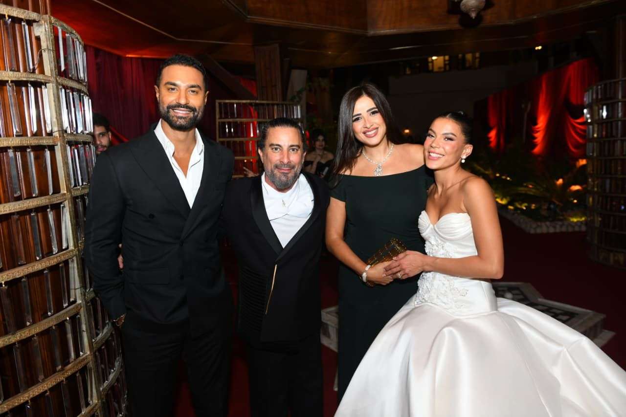 وشهد الحفل حضور نخبة من النجوم، من بينهم يسرا، ياسمين عبد العزيز، كريم فهمي، والمنتج أحمد السبكي، الذين حرصوا على تهنئة العروسين والتقاط الصور التذكارية في أجواء احتفالية مميزة زينتها المعالم الأثرية التي أضفت طابعًا ساحرًا على الزفاف.