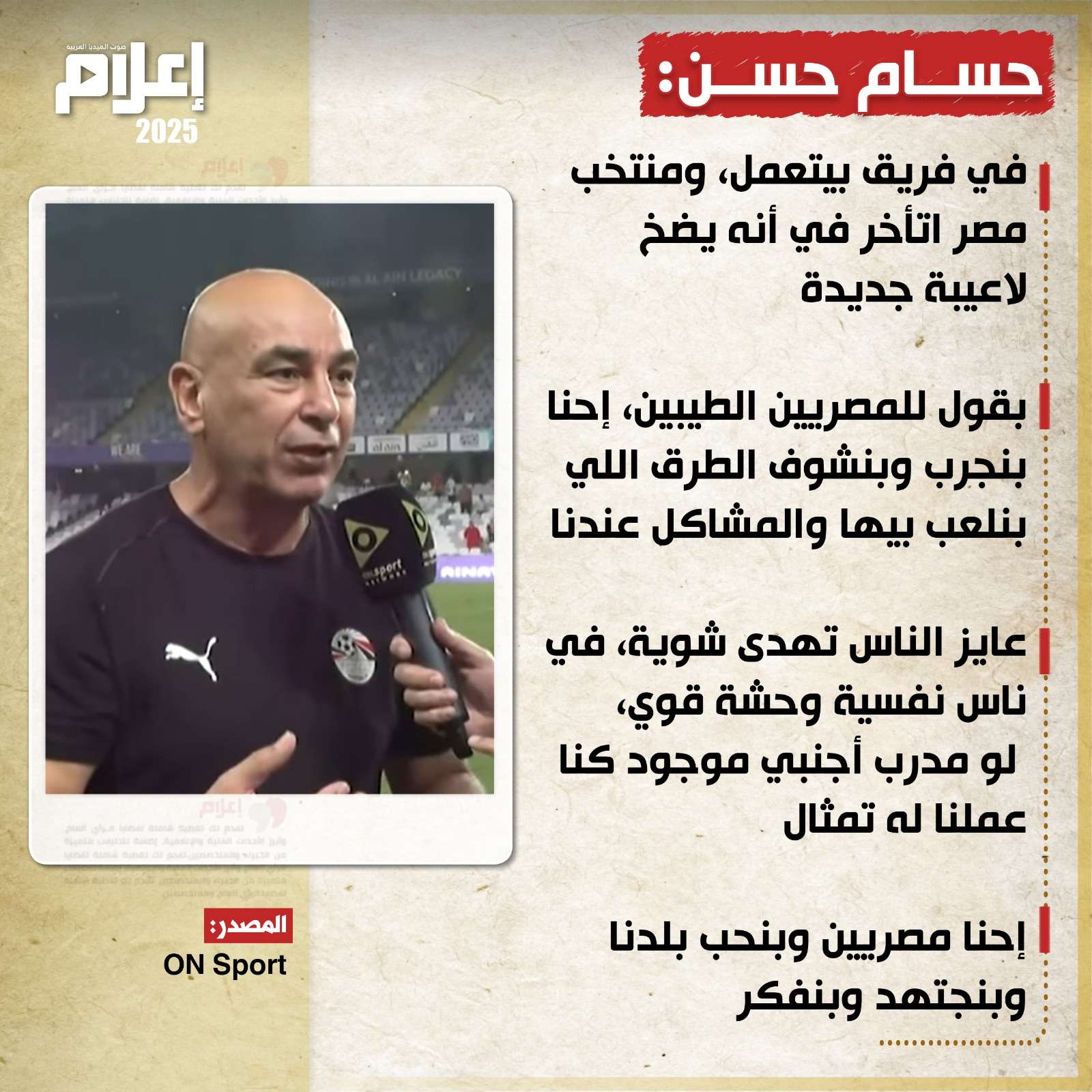 وقال حسام حسن خلال لقاء مع قناة ON Sport، إن المنتخب يواجه إصابات كثيرة تؤثر على تشكيلة الفريق: "عندي تيم بحاله مصاب، واللاعيبة مرهقة، لعبوا أربع ماتشات في عشر أيام، وفيه لعيبة جاية من الدوري ومجهدة"، وأكد أنه يسعى لمنح الفرصة للاعبين الجدد، مشددًا على أن هذه المرحلة هدفها البناء وليس النتائج.