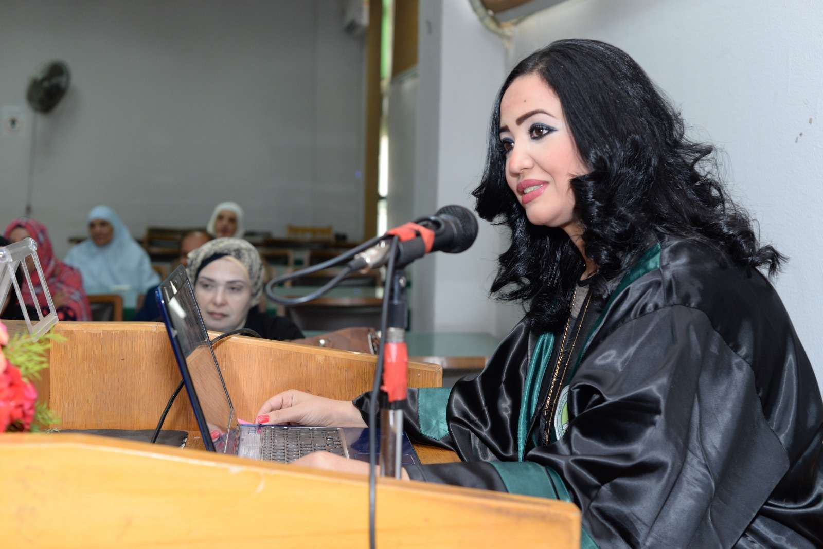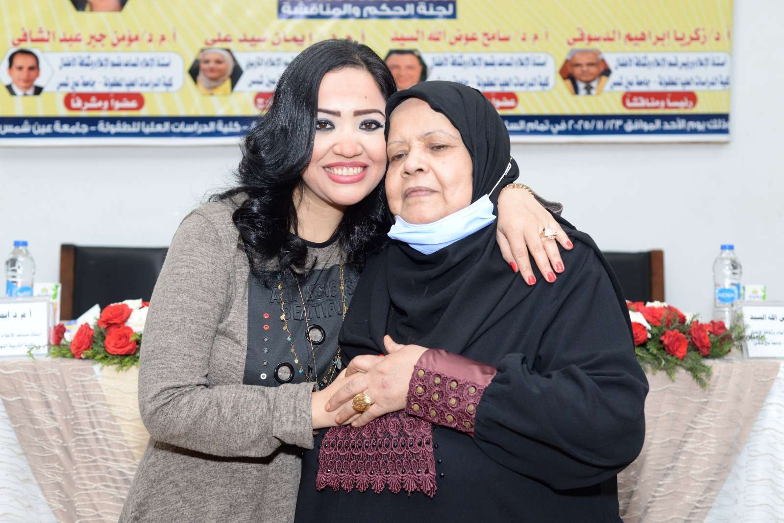 وقد ترأس لجنة المناقشة الأستاذ الدكتور زكريا إبراهيم الدسوقي، رئيس قسم الإعلام وثقافة الأطفال بكلية الدراسات العليا للطفولة، وشارك في المناقشة كل من الدكتور مؤمن جبر عبد الشافي، والأستاذة الدكتورة إيمان سيد علي من خارج الجامعة، والدكتور سامح عوض الله من داخل الجامعة.