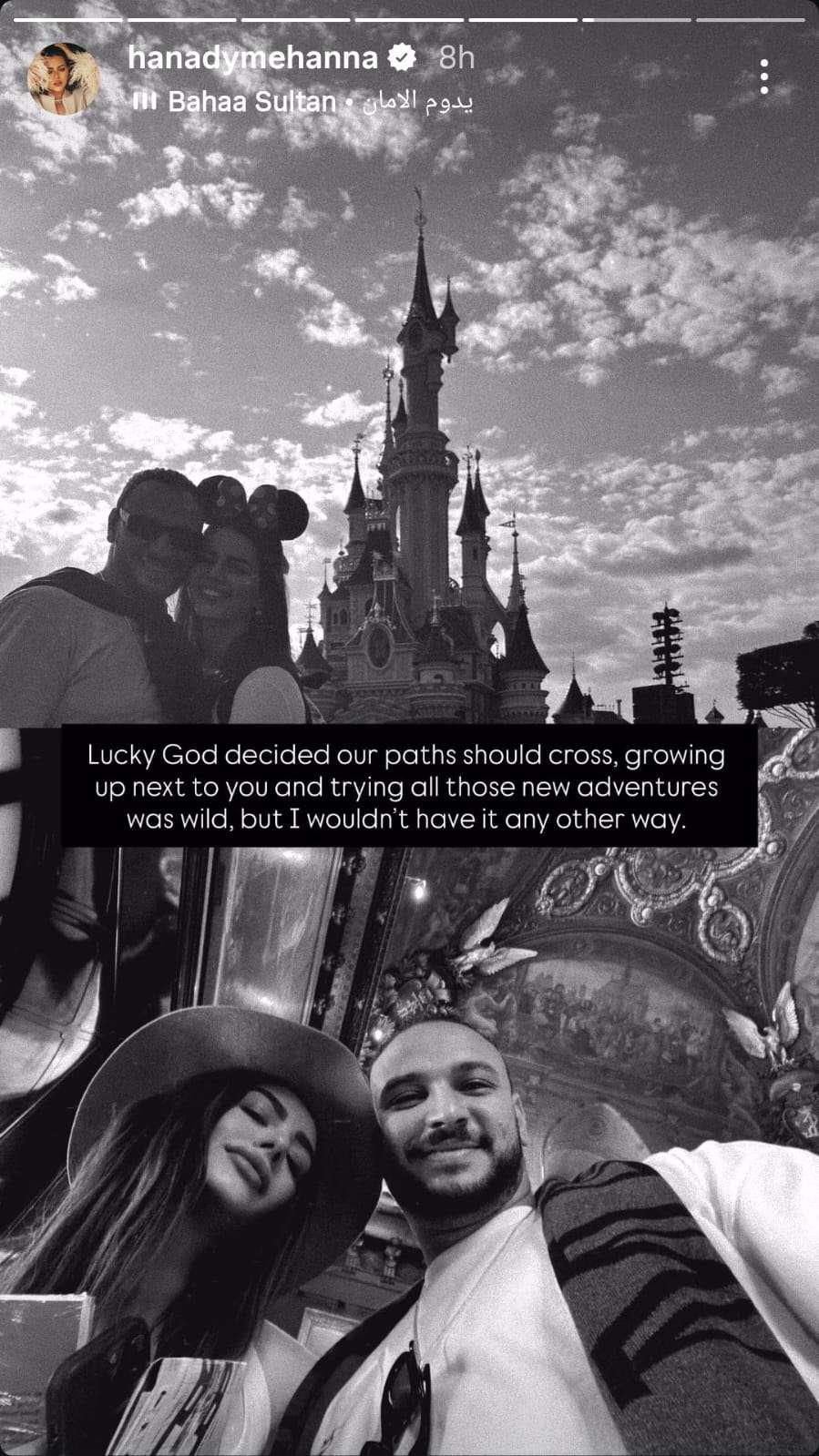 نشرت "مهنا" من خلال خاصية القصة القصيرة "ستوري" عبر حسابها الرسمي على موقع التواصل الاجتماعي وتبادل الصور والفيديوهات "إنستجرام"، مجموعة صور جمعتها بزوجها أحمد خالد صالح وكتبت: "محظوظة لأن الله قرر أن تتقاطع طرقنا وأن نكبر جنبًا إلى جنب".