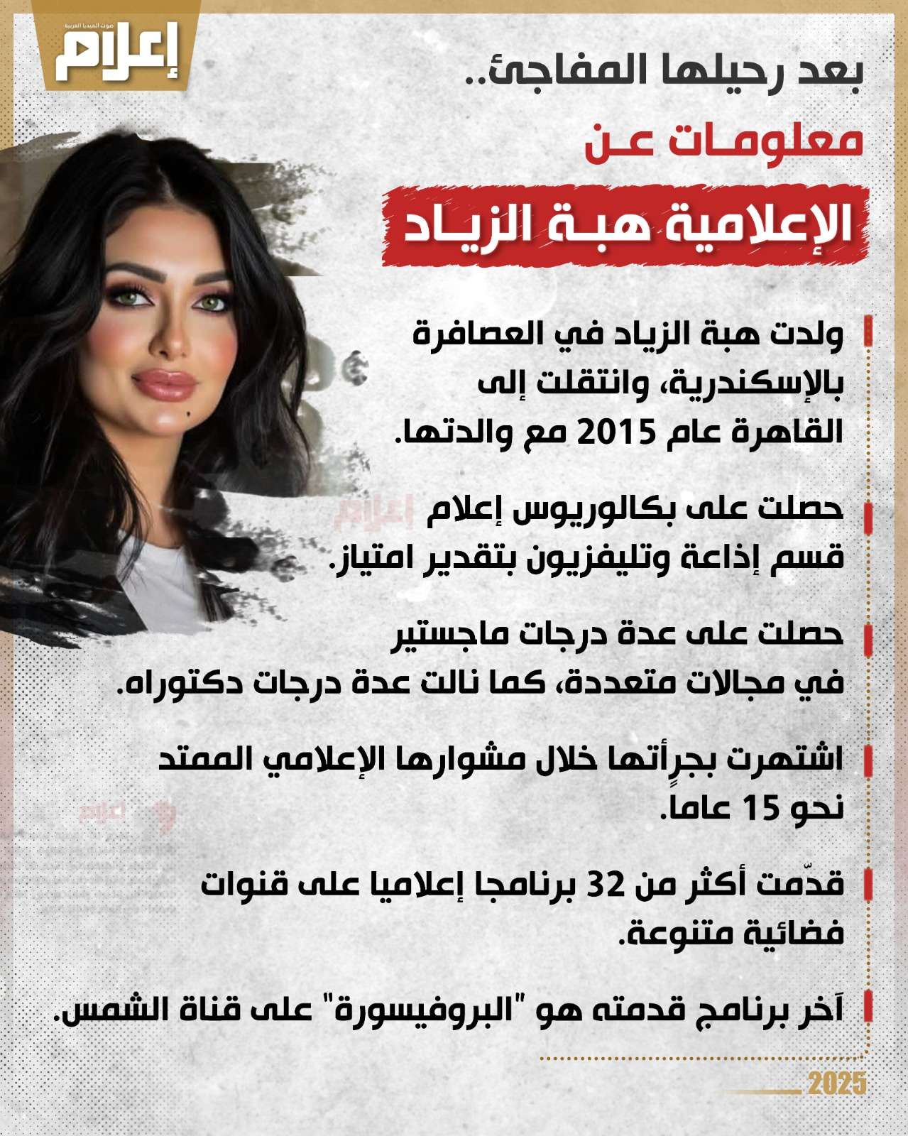 ولم تكن تعاني هبة الزياد من أي أعراض صحية سابقة، وكانت تمارس حياتها المهنية بشكل طبيعي، إلا أن الوفاة جاءت اليوم بشكل مفاجئ تمامًا.