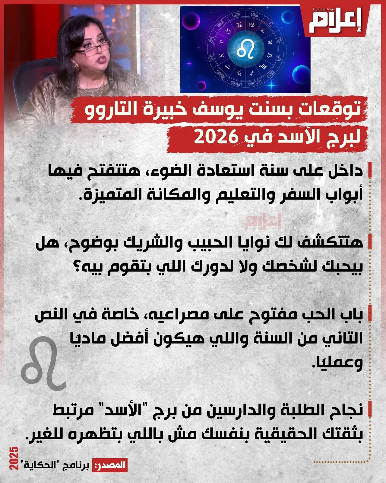 هي سنة وعي وترتيب أولويات عشان تستفيد لأعلى درجة ممكنة، نجاح الطلبة والدارسين من برج "الأسد" مرتبط بثقتك الحقيقية بنفسك مش باللي بتظهره للغير