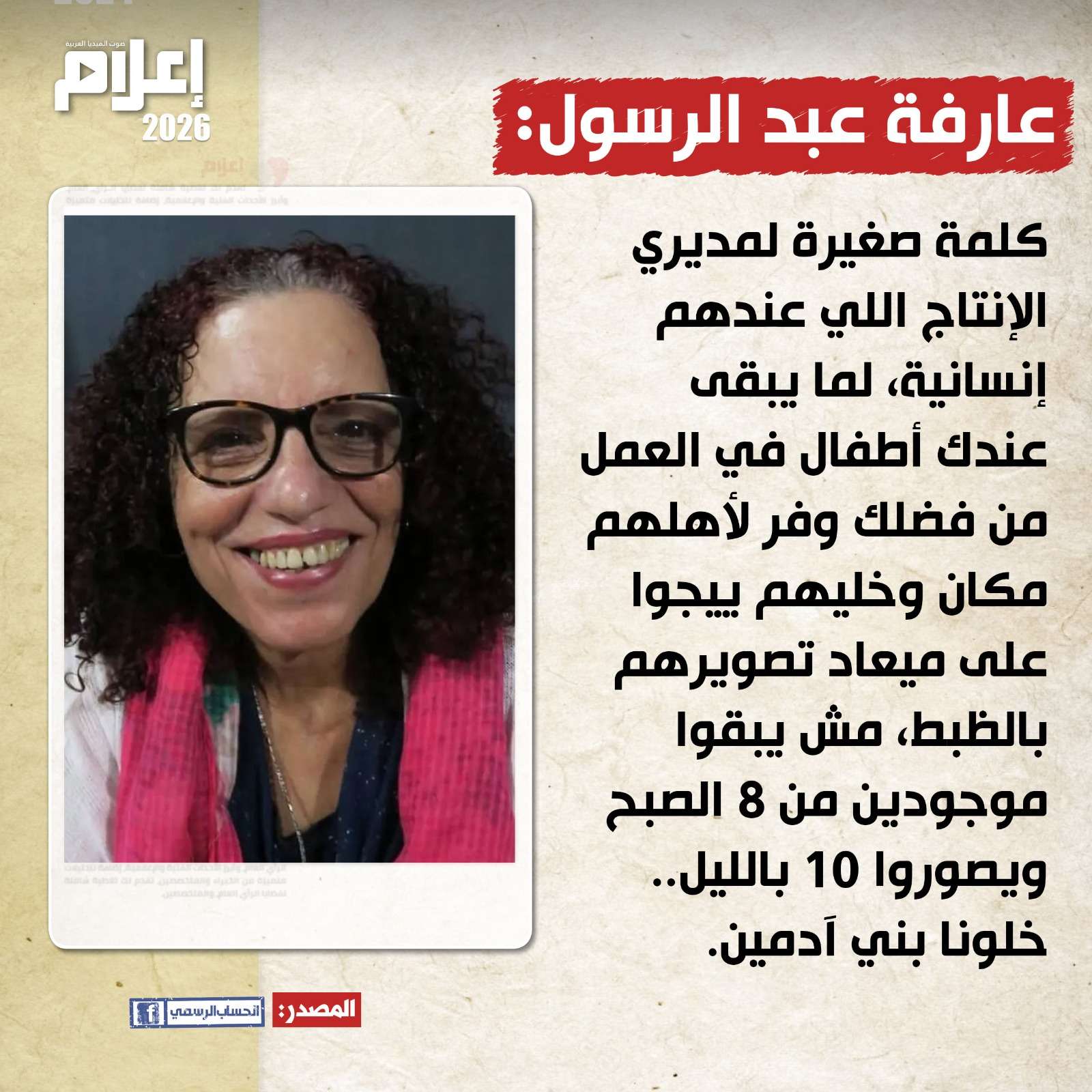 وجهت الفنانة عارفة عبد الرسول رسالة لمديري الإنتاج بعد أن لاحظت موقفًا صعبًا مرت به أم أحد الأطفال خلال مشاركته في عمل فني.