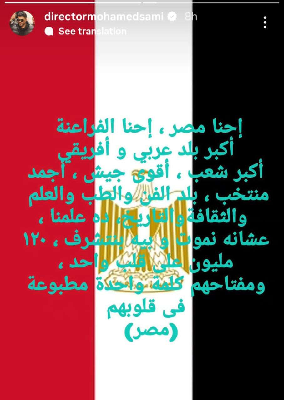 شارك "سامي" صورة علم مصر من خلال خاصية القصة القصيرة "ستوري" عبر حسابه الرسمي على موقع التواصل الاجتماعي وتبادل الصور والفيديوهات "إنستجرام" وعلق: "احنا مصر، احنا الفراعنة".
