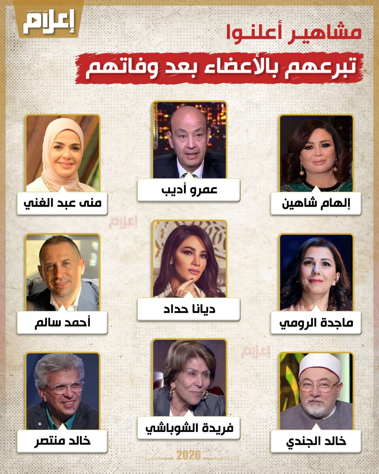 وفيما يلي يرصد "إعلام دوت كوم" مشاهير أعلنوا التبرع بأعضائهم بعد الوفاة: