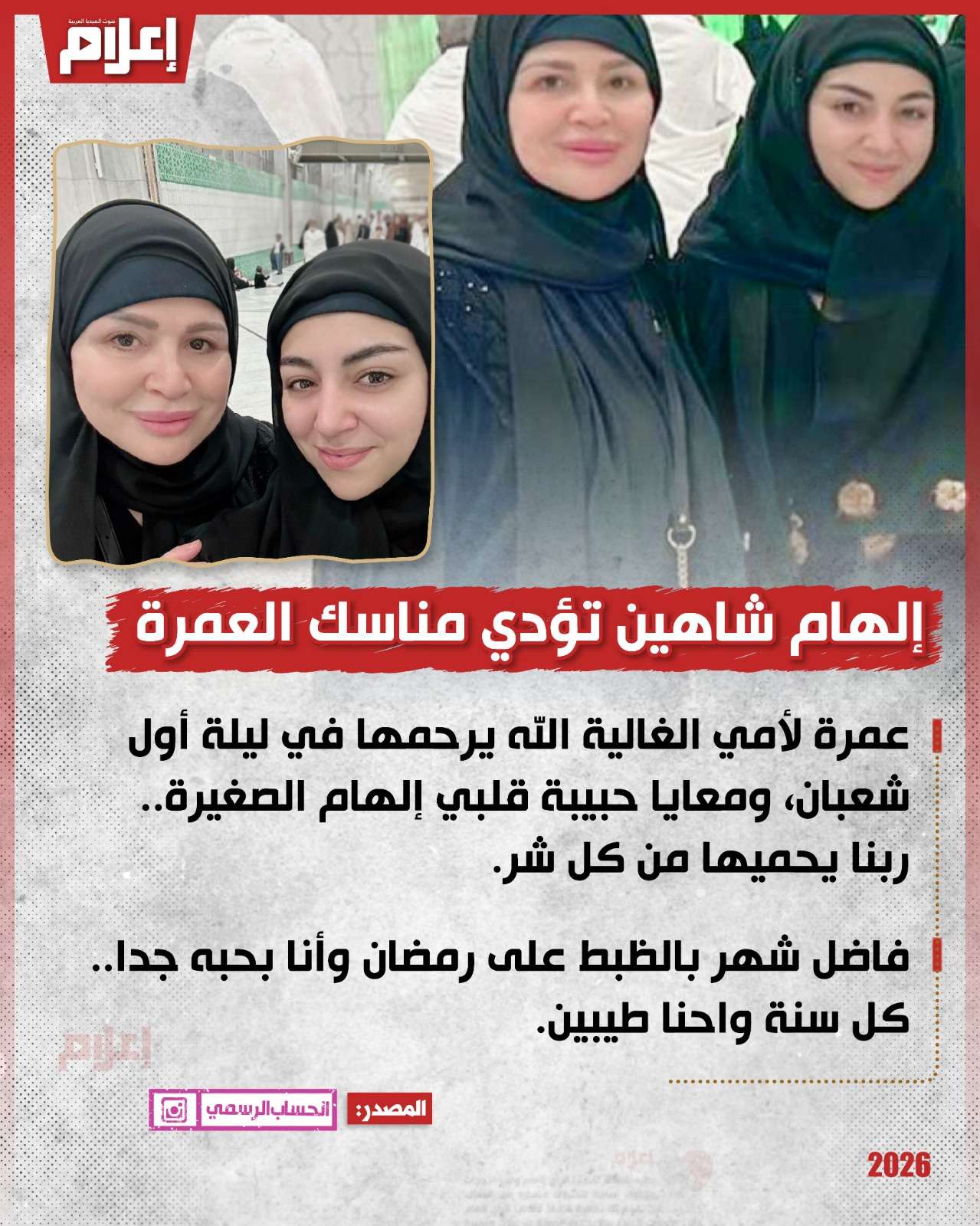 كتبت: "عمرة لأمي الغالية الله يرحمها في ليلة أول شعبان، ومعايا حبيبة قلبي إلهام الصغيرة.. ربنا يحميها من كل شر ويبارك فيها".