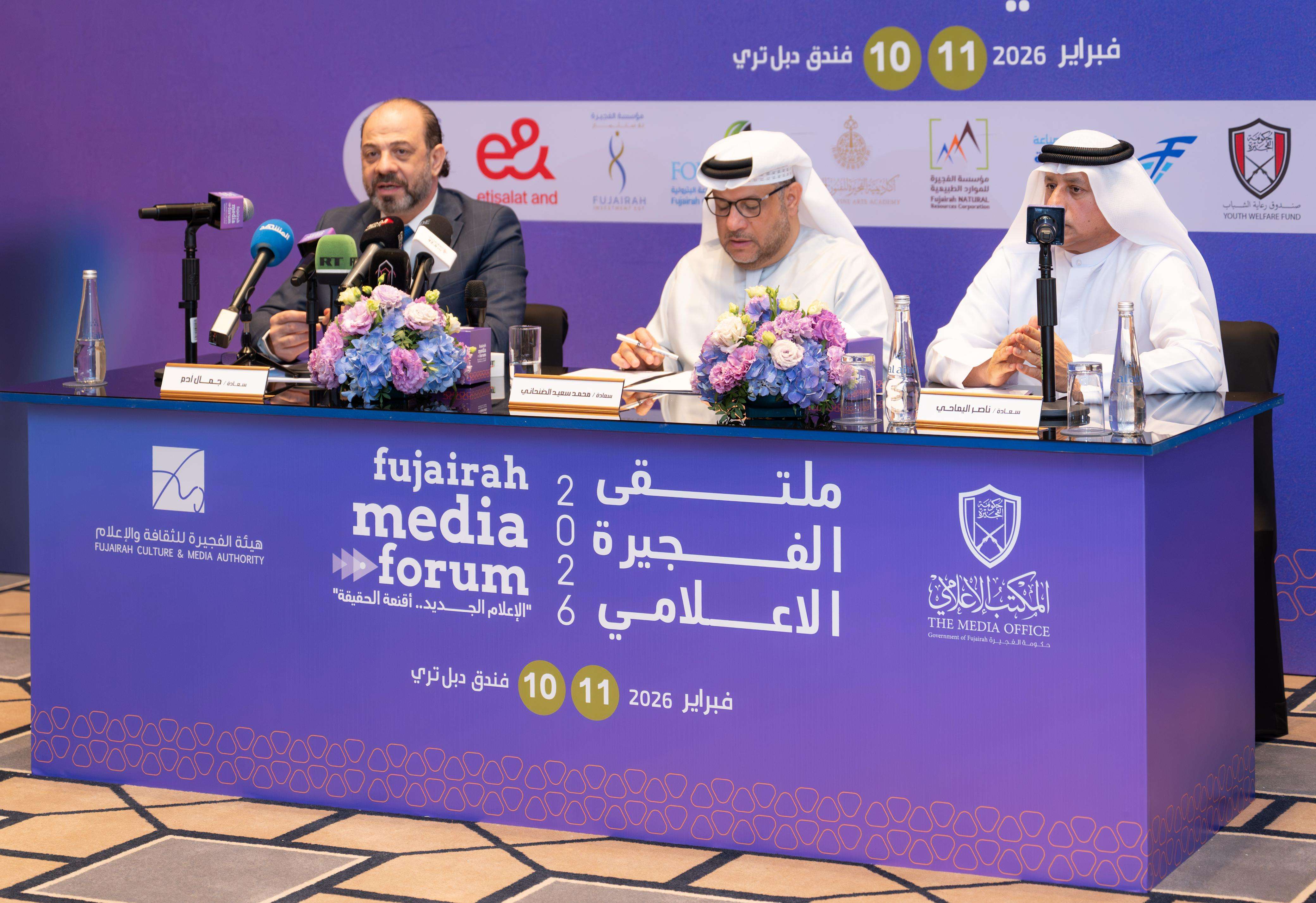 من جانبه، أكد ناصر محمد اليماحي أن ملتقى الفجيرة الإعلامي يمثل إضافة نوعية للمشهد الإعلامي العربي، ومنصة حوارية تواكب التحولات العميقة التي يشهدها القطاع الإعلامي، مشيراً إلى أن اختيار شعار «الإعلام الجديد.. أقنعة الحقيقة» يجسد وعياً حقيقياً بحساسية المرحلة الراهنة، ويؤكد أهمية بناء شراكات فاعلة بين المؤسسات الإعلامية والثقافية، وتعزيز خطاب إعلامي رصين يحافظ على القيم المهنية ويواكب المتغيرات التقنية.