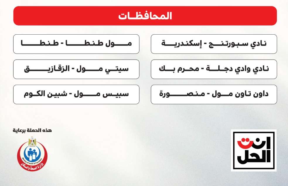 على أن يكون آخر يوم للتسجيل في المبادرة هو اليوم 21 فبراير، في الأماكن التي تتوزع فيها قافلات المبادرة الطبية، وفيما يلي أماكنها: