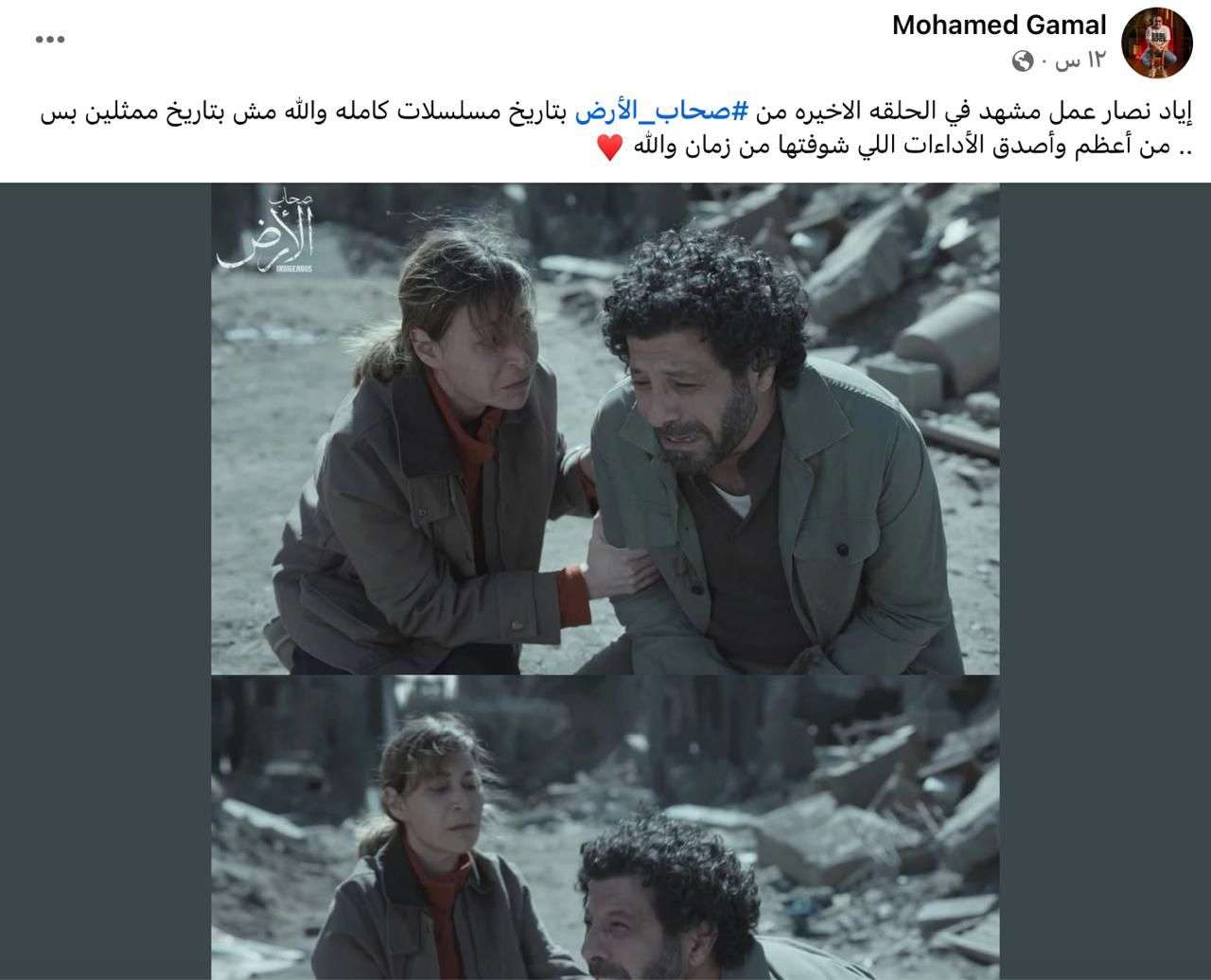 حصد الفنان إياد نصار إشادات واسعة من الجمهور والنقاد، عقب عرض الحلقة الأخيرة من مسلسل "صحاب الأرض"، والتي شهدت تفاعلاً كبيرًا عبر مواقع التواصل الاجتماعي.