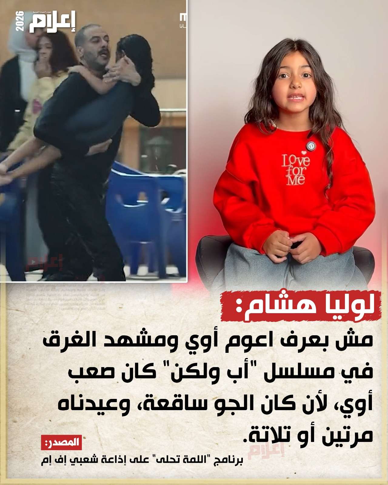 تحدثت الطفلة لوليا هشام عن دورها بمسلسل "أب ولكن"، في تصريحات خاصة لبرنامج "اللمة تحلى" على إذاعة شعبي إف إم مع شيماء السباعي.