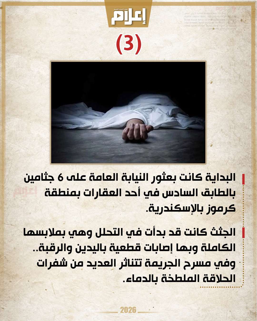 البداية كانت بعثور النيابة العامة على 6 جثامين بالطابق السادس في أحد العقارات بمنطقة كرموز بالإسكندرية.