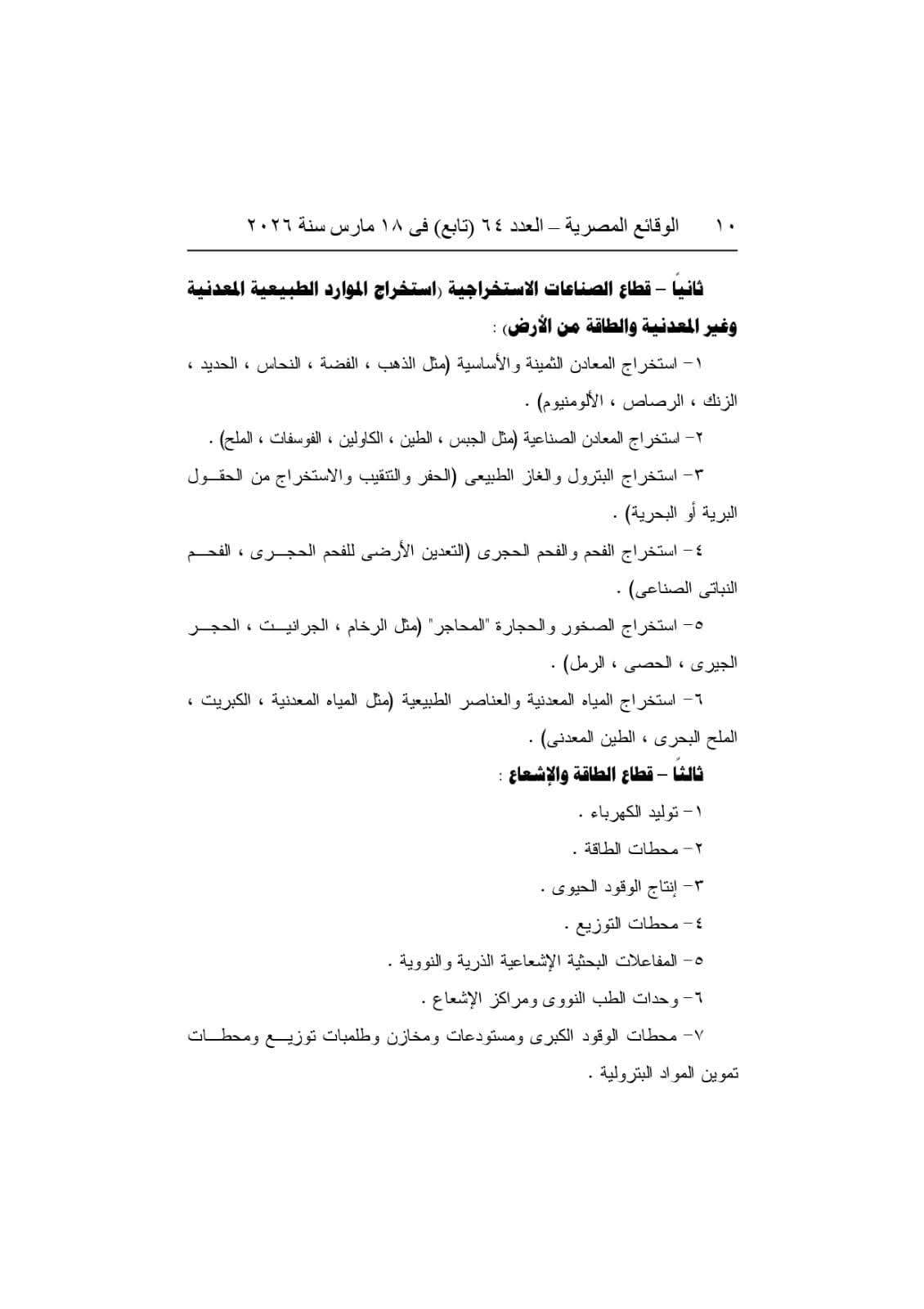 شمال وجنوب سيناء، البحر الأحمر، مطروح، الوادي الجديد، إضافة إلى مناطق توشكى وشرق العوينات، والمناطق الممتدة من أبو رمادة حتى حلايب، إلى جانب المناطق الصناعية الجديدة التي يحددها رئيس مجلس الوزراء.