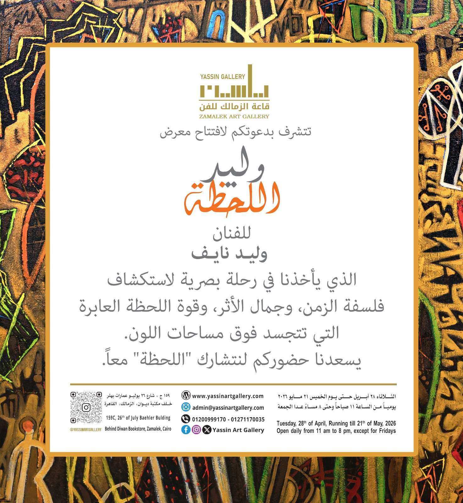 تحت عنوان "وليد اللحظة"، يقدّم الفنان التشكيلي وليد نايف معرضه الجديد، في تجربة بصرية تحاول كسر فكرة الزمن الثابت، والانحياز إلى لحظة مراوغة لا يمكن الإمساك بها.