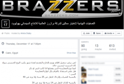 تداولت بعض المواقع خبر عن تنظيم احدى شركات الأفلام الإباحية المشهورة إختبارات لإختيار ممثلين لأعمالها القادمة من مصر.