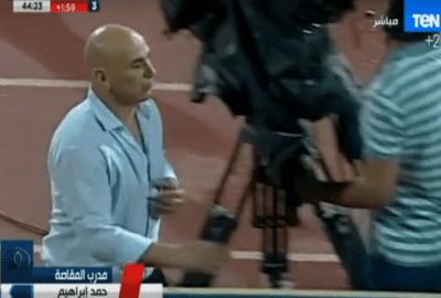 قام حكم مباراة فريقي “المصري والمقاصة”، بطرد حسام حسن، المدير الفني للمصري، وحمد إبراهيم، المدرب العام للمقاصة، بعد أن تشاجرا بالأيدي.