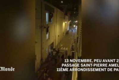 أظهر فيديو نشرته صحيفة “لوموند” الفرنسية لحظة تمكن بعض الرهائن من الفرار من الباب الخلفي لمسرح “باتاكلان” حيث تم احتجاز نحو 100 رهينة من قبل إرهابيين.