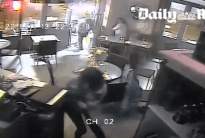 كما يظهر في الفيديو مجموعة من الأشخاص من رواد المطعم، والعاملين فيه، وهم يحاولون الاحتماء من وابل الرصاص الذي كان يطلقه المهاجمون.