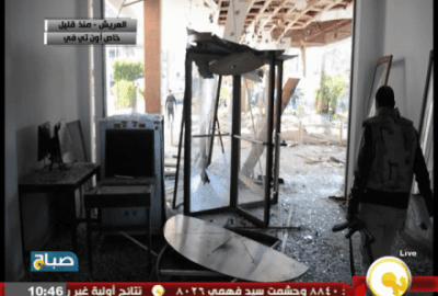 بثت قناة ontv لقطات حصرية، من موقع تفجير سيارة مفخخة، أمام كمين أمني بفندق “سويس إن”، الذي ينزل فيه قضاة المراقبة على الجولة الثانية من الانتخابات البرلمانية بالعريش.
