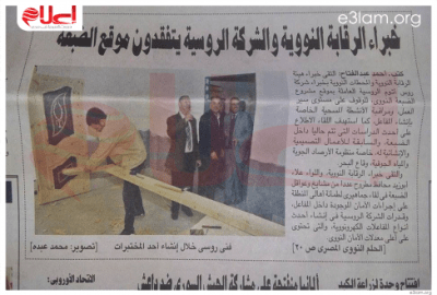 الصورة التي تضمنت نجار يقوم بأعمال خشبية، صاحبها تعليق من الأهرام “فني روسي خلال إنشاء أحد المختبرات” علماً بأن الأنشطة النووية لن تبدأ قبل عامين على الأقل بعد الانتهاء من تجهيز الأرض وتنفيذ أعمال الإنشاءات الأولية، بينما يباشر النجار عمله في تجهيز مقرات الإقامة التي يجري تنفيذها للخبراء الروس.
