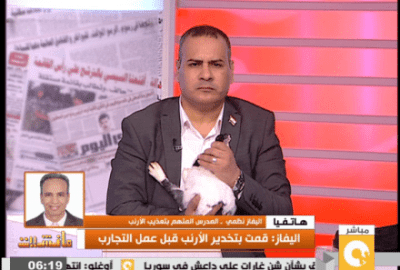 معظم المقدمات اللافتة للإعلامي جابر القرموطي على قناة أون تي في تعتمد على مستلزمات لا روح فيها، نادرا مع اصطحب القرموطي معه حيوان داخل الاستديو، حدث هذا في عيد الأضحى قبل الماضي وكان ضيف المقدم “خروف”، وتكرر مرة أخرى قبل يومين وكان الضيف هو “أرنب” حي للتعليق على واقعة تعذيب أحد المدرسين لأرنب في معمل المدرسة .