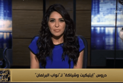 قالت الإعلامية إنجي أنور أنه لأول مرة في تاريخه، حرص البرلمان على تعليم نوابه أصول الإتيكيت والبروتوكول، مشيرة إلى أن الأمانة العامة لمجلس النواب أعدت ورشة عمل للفائزين في المرحلة الأولى، لإعطائهم تعليمات بشأن حسن مظهرهم والتعامل محليًا ودوليًا.