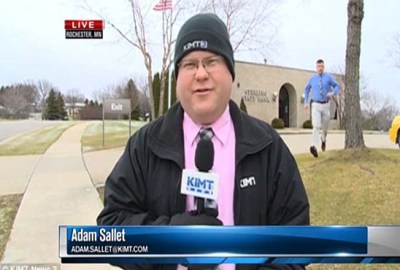 ووفقا لصحيفة “وول ستريت جورنال” الأمريكية، أنه أثناء قيام المراسل التليفزيوني، آدم ساليت، بتغطية عملية السطو على بنك، شاهد موظفا في البنك كان يركض خلف أحد المشتبهين بهم.