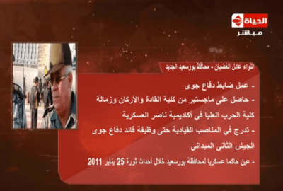 قال اللواء عادل الغضبان، محافظ بورسعيد الجديد، أن الخلفية العسكرية شرف، لأنها علمتنا الانضابط والاخلاص في العمل، وهذا الاجتهاد والاخلاص سينعكس على الأوضاع بالمحافظة.