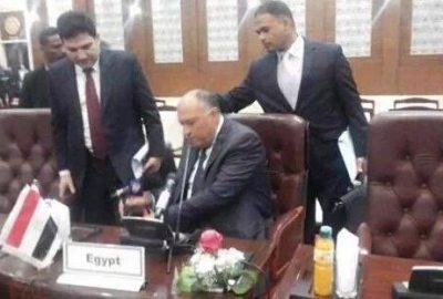 وكان التليفزيون المصري وضع “المايك” الخاص به قبيل افتتاح الجلسة الأولى أمام الوزير، ووضعت قناة الجزيرة “المايك” الخاص بها ضمن قنوات أخرى، أمام منصة وفد السودان الذي يلقي وزير خارجيتها الكلمة الافتتاحية، وعندما أنهى وزير الخارجية السوداني كلمته، نقل العاملون بالقنوات الميكروفونات، وعندما وضع عاملو الجزيرة “مايك” أمام شكري، قال: “ابعد ده من هنا”، فاستجاب عامل القناة ونقله، وذلك حسبما ذكرت جريدة “الوطن”.