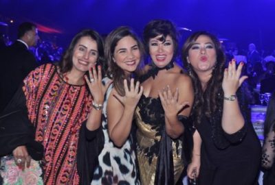 وفي الصورة الرابعة يستمع ساويرس باهتمام لحديث الفنانة أروى جودة، بينما تظهر في الصورة الأخيرة الفنانة فيفي عبده هي وابنتها مع صديقاتها وتشير بحركاتها الشهيرة “5 أمواه”