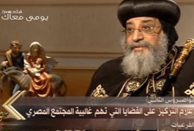 انتقد البابا تواضروس الثانى، بابا الإسكندرية، بطريرك الكرازة المرقسية، وضع الإعلام المصري مطالبه بأن يرتب أولوياته ويهتم بالقضايا التي تهم غالبية الشعب المصري ويترك القضايا الفرعية، مشددًا على ضرورة زرع الأمل في نفوس المصريين.