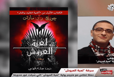 قال هشام فهمي، مترجم رواية “لعبة العروش” الشهيرة، إنه يرفض تماماً تبرير ما تعرضت له الرواية من سرقة على الانترنت فور صدورها بأن ثمنها مرتفع، مشيراً إلى ارتفاع تكلفتها بسبب دفع دار التنوير للنشر مبلغاً ضخماً للمؤلف للحصول على حقوق الترجمة للعربية، بالإضافة إلى أجور الترجمة والمصححين والتوزيع والطباعة الفاخرة حيث صدر الجزء الأول في مجلدين من 1000 صفحة.