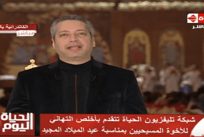 قدم الإعلامي تامر أمين حلقة خاصة في برنامجه “الحياة اليوم” المذاع على فضائية “الحياة” من داخل الكاتدرائية المرقسية بالعباسية بمناسبة الاحتفال بعيد الميلاد المجيد.
