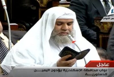 وضع النائب أحمد الشريف، أحد نواب محافظة الإسكندرية، ورقة اليمين الدستورية داخل المصحف الشريف، وقام بحلف اليمين وهو يحمل المصحف خلال الجلسة الإجرائية الأولى لمجلس النواب.