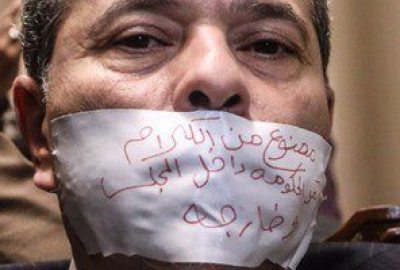ظهر النائب توفيق عكاشة عضو مجلس النواب عن دائرة طلخا ونبروه فمه ، داخل إحدى قاعات مجلس النواب، مكمما فمه باستخدام لاصق طبى، وقد كتب عليه “ممنوع من الكلام داخل المجلس وخارجه بأمر الحكومة”.
