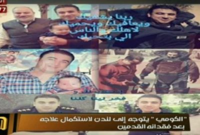 وأكد والد النقيب محمود الكومي، أن نجله غادر إلى لندن لبدء الرحلة العلاجية التي وجه وزير الداخلية اللواء مجدي عبد الغفار برعاية الوزارة لها، وذلك الأثنين الماضي، برفقة زوجته ، جاء ذلك في إطار توجيه الوزارة أوجه الرعاية الصحية والاجتماعية لأبطال الشرطة.