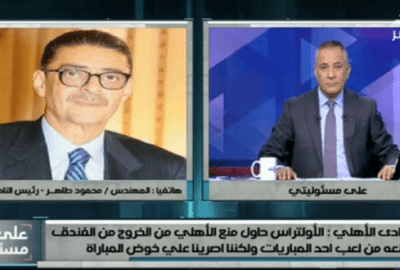 وطلب طاهر من الدخلية، القبض على من رفعوا هذه الشعارات اليوم، مؤكدًا انهم “ارتكبوا جريمة النهاردة”، مضيفًا: “هو ده جمهور الأهلي؟ أكيد في ناس وراهم.. أن تُهاجم الدولة من المدرجات يبقى في حاجة غلط.. كان بيبقى فيه خلافات في المدرجات لكن كان فيه تحضر”.