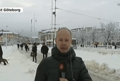 نشر موقع ميرور مقطع فيديو لمراسل تليفزيوني ادعى أن سوء الأحوال الجوية أدت إلى توقف الترام في مدينة “جوتنبرج” السويدية عن العمل على الرغم من ظهور ترام يسير خلفه.