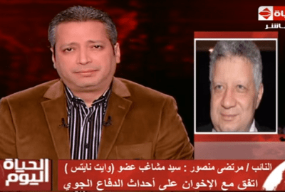 كسرت قناة “الحياة” المقاطعة الإعلامية المفروضة على مرتضى منصور، رئيس نادي الزمالك، وعضو البرلمان، وذلك بعد أن أجرى مداخلة هاتفية مع الإعلامي تامر أمين، ببرنامج “الحياة اليوم”، اليوم الخميس.