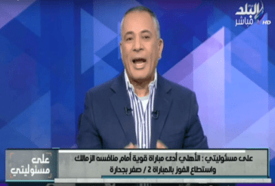 وقال “موسى” خلال برنامجه “على مسئوليتي” المذاع على قناة “صدى البلد”، إن المباراة شهدت اليوم احترام وأخلاق رياضية من الفرقين الأهلي والزمالك على أرض الملعب، مضيفا: “اقول مبروك للأهلي وحظ سعيد للزمالك، ومعلش لجمهور الزمالك المرة دي مش بتاعتكوا، وأشكر ميدو والنادي الزمالك ولكن هو ده النادي الأهلي”
