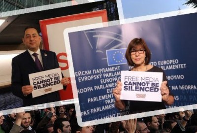 واستنكرت الكتل السياسية بالبرلمان الأوروبي عملية مداهمة قوات الشرطة التركية لوسائل الإعلام والصحف الحرة. وقام زعيما كتلتي الاشتراكيين الديمقراطيين والخضر بالبرلمان الأوروبي الإيطالي جيانّي بيتيلا والألماني ربيكا هارمس بالتقاط صور لأنفسهم وهما رافعين شعار “لا يمكن إسكات الصحافة الحرة” المدون على لافتات باللغة الإنجليزية معلنين دعمهما لرئيس تحرير جريدة” زمان” أكرم دومانلي ومدير مجموعة سامان يولو اإعلامية هدائت كاراجا المحتجزين على ذمة التحقيقات.