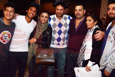 بحضور المخرج طارق العريان زوج اصالة وابنها على ومدير اعمال اصالة تامر عبد المنعم وعازف الايقاع سعيد الارتست ومهندس الصوت ياسر انور وشاهر.